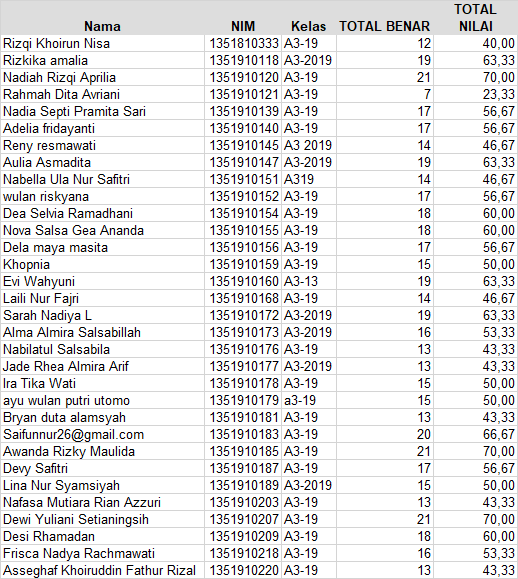 Berikut ini hasil UAS TEORI KIMIA DASAR dan PRAKTIKUM KIMIA FARMASI 1